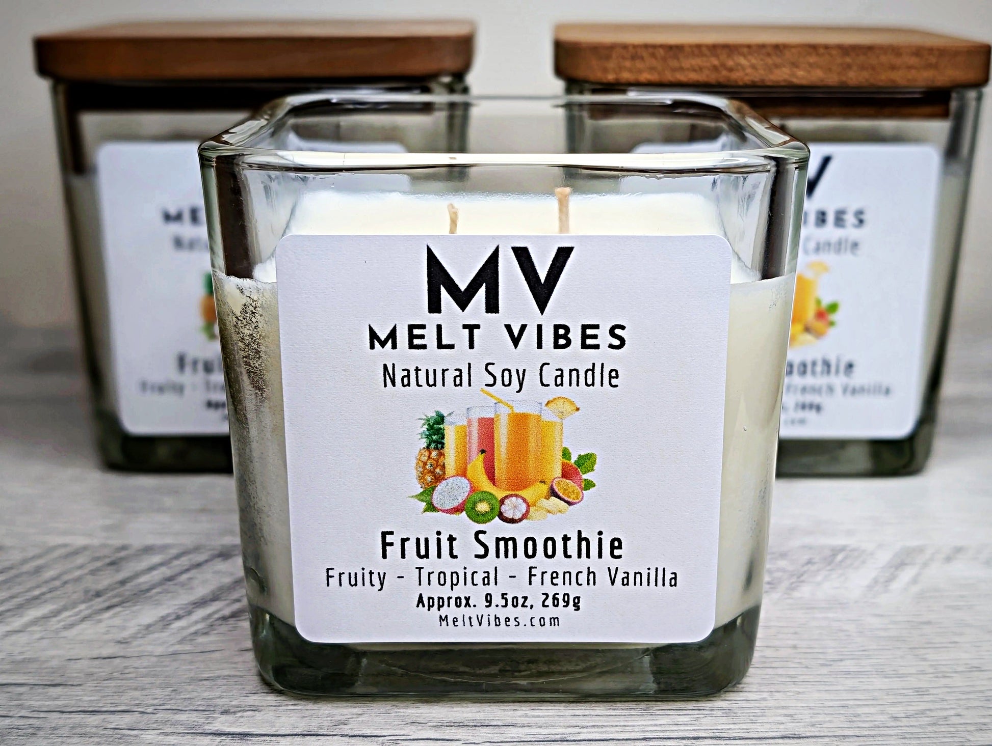Ditch the blender and light up Fruit Smoothie Soy Candle instead—all the tropical vibes, zero cleanup. Hand-poured to perfection, this candle bursts open with juicy pineapple, passion fruit, and zesty citrus that instantly transports you to that first sip of an ice-cold smoothie. As it melts, creamy French vanilla sweeps in with a luxurious, dreamy sweetness that wraps your space in pure comfort.